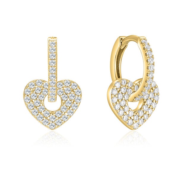 Klapcreolen met hanger hart en 118 Zirkonia steentjes